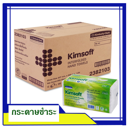 กระดาษเช็ดมือ KIMSOFT Inter fold Hand Towels 250 แผ่น (กล่องละ 12 ห่อ)