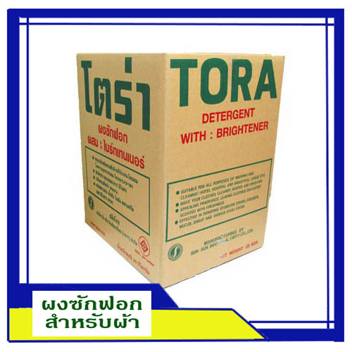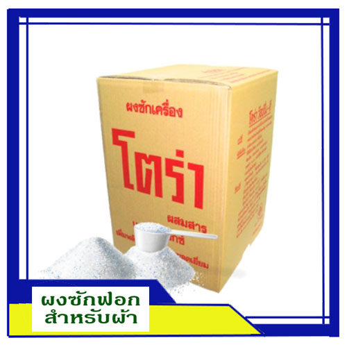 ผงซักฟอกที่ใช้สำหรับการซักผ้า เช่น ผงซักฟอกโตร่า ซึ่งมีให้เลือกหลายแบบ คือแบบไม่มีกลิ่นหอม แบบมีกลิ่นหอม รวมทั้งแบบเพิ่มเม็ดบรีสช่วยให้ผ้าขาวสดใสขึ้น ,